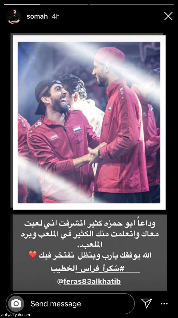 قدم السوري عمر السومة مهاجم فريق الأهلي الأول لكرة القدم عبر حسابه الرسمي في منصة التواصل الاجتماعي "إنستجرام"، رسالة وداع إلى زميله فراس الخطيب الذي اعتزل اللعب دوليًا. وكان السومة زامل الخطيب في المنتخب السوري وفريق القادسية الكويتي.