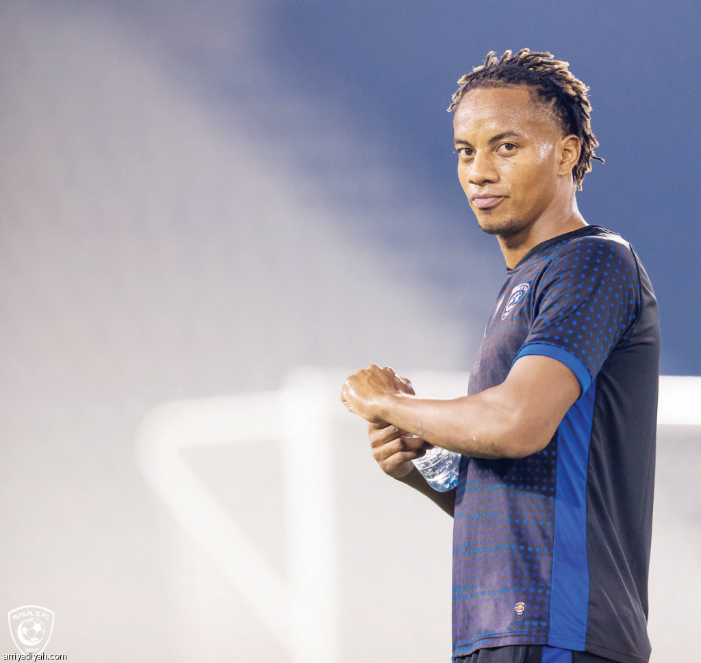 صورة التقطت أمس لأندريه كاريلو لاعب فريق الهلال الأول لكرة القدم أثناء الحصة التدريبية استعدادًا لمباراة السد اليوم(المركز الإعلامي ـ الهلال)