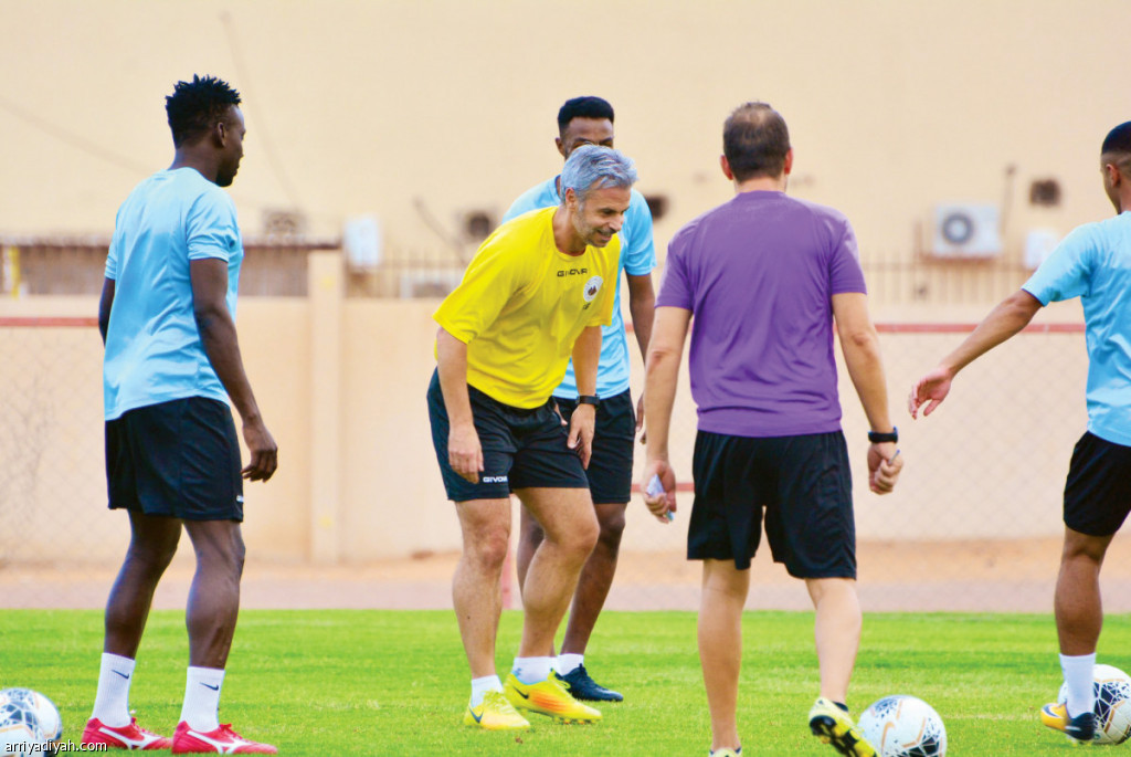 صورة التقطت أمس لمدرب الجبلين يتابع أداء اللاعبين في التدريبات (المركز الإعلامي ـ الجبلين)
