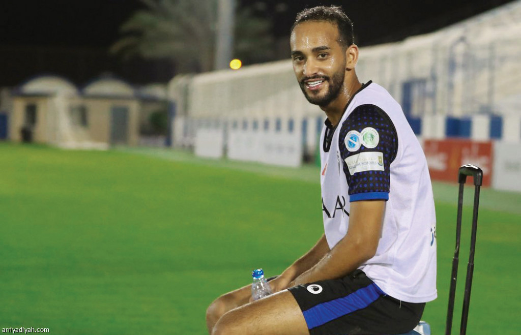 صورة التقطت أمس لعبد الله عطيف لاعب فريق الهلال الأول لكرة القدم جالسًا على "برادة الثلج" قبل انطلاق الحصة التدريبية(المركز الإعلامي ـ الهلال)
