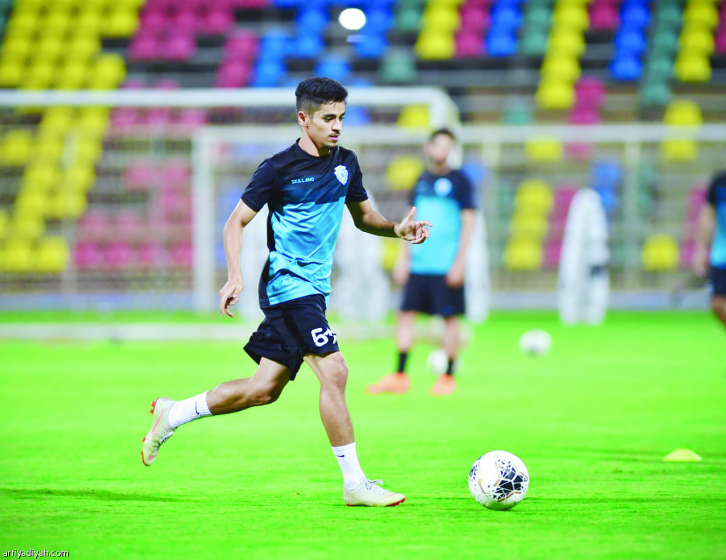 صورة التقطت أمس لمحمد محسن لاعب فريق الباطن أثناء الحصة التدريبية استعداداً لمباراة أحد (المركز الإعلامي ـ الباطن)