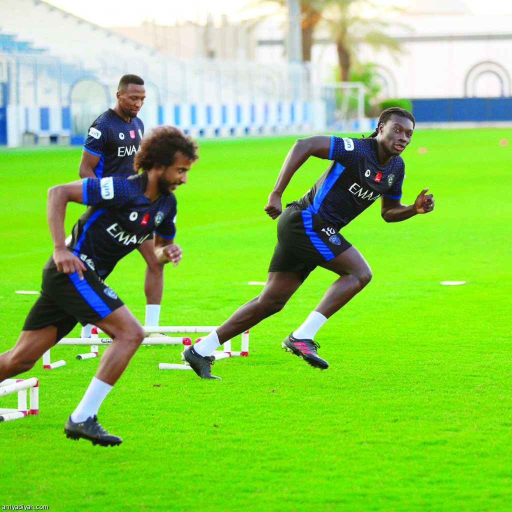 في الصورة التي التقطت أمس يبدو ياسر الشهراني وجوميز لاعبا فريق الهلال الأول لكرة القدم أثناء التدريبات قبل المغادرة إلى الدمام للقاء الاتفاق. (المركز الإعلامي ـ الهلال)
