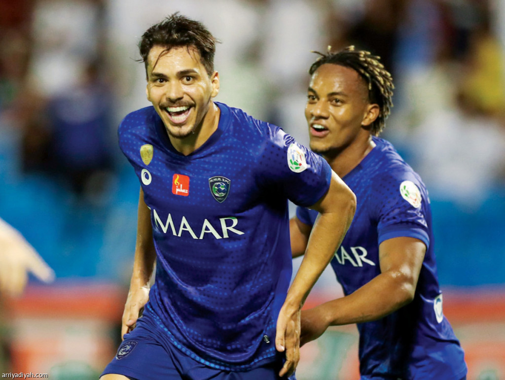 صورة التقطت أمس لفرحة البرازيلي إدواردو مهاجم فريق الهلال الأول لكرة القدم وخلفه البيروفي كاريلو بعد تسجيل الأول هدف فريقه الرابع في شباك الاتفاق في الوقت بدل الضائع في المباراة التي انتتهت 4ـ1 للأزرق (المركز الإعلامي ـ الهلال)