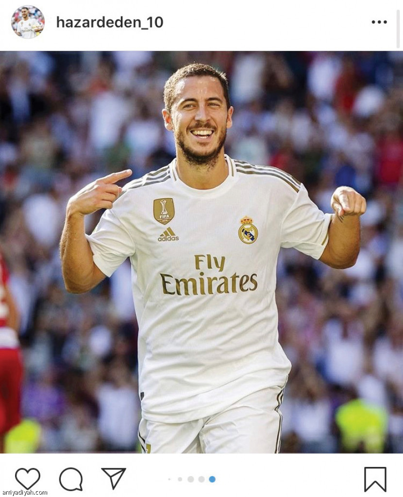 احتفل البلجيكي إيدين هازارد، لاعب فريق ريال مدريد الإسباني الأول لكرة القدم، بتسجيله أول أهدافه في الليجا الإسبانية مع فريقه العاصمي، أمس الأول، ونشر البلجيكي بوستًا في حسابه على "إنستجرام"، وعلَّق كاتبًا: "هلا مدريد"، ووصل عدد المعجبين بالبوست نحو مليون ونصف.