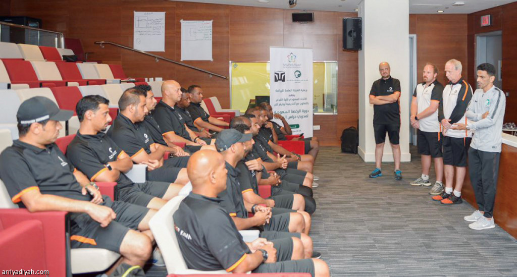 صورة التقطت أمس للحراس السعوديين أثناء مشاركتهم في دورة الرخصة السعودية (المركز الإعلامي ـ اتحاد القدم)