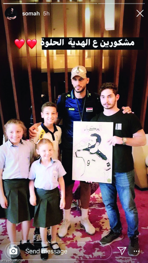 قدم عدد من الجماهير السورية الموجودة مع بعثة المنتخب السوري في دبي، هدية خاصة لعمر السومة قائد منتخب بلادهم، بعد مستواه المميز في المباراة الماضية في تصفيات كأسي العالم وآسيا. وبث السوري بوستًا عبر حسابه في إنستجرام وهو يتسلم الهدية، وعلق قائلًا: شكرًا لكم كثيرًا.