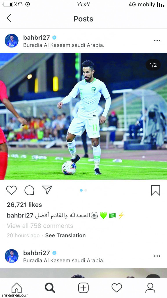 احتفل هتان باهبري لاعب منتخب السعودية الأول لكرة القدم عبر حسابه الرسمي في منصة التواصل الاجتماعي "إنستجرام"، بفوز الأخضر السعودي في ثاني مبارياته أمام سنغافورة أمس الأول بنتيجة ثلاثة أهداف مقابل لا شيء. وعلق باهبري على البوست الذي نال نحو 26 ألفًا قائلًا: الحمد لله على كل حال والقادم أفضل.