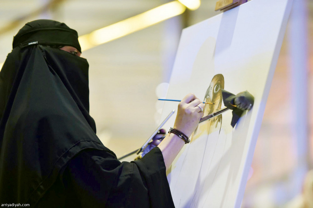 تضاعفت أعداد زوار معرض الصقور والصيد السعودي في نسخته الثانية وشملت جميع شرائح المجتمع.. وفي الصورة التي التقطت أمس فتاة ترسم صقرًا في المعرض المنظَّم ضمن فعاليات موسم الرياض