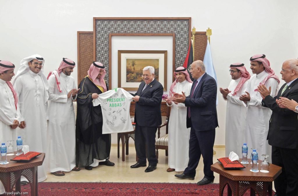 وأوضح عباس لدى لقائه في مقر الرئاسة في مدينة رام الله، بعثة المنتخب السعودي، أمس قائلاً "الرابط التاريخي والديني الإسلامي بين البلدين، ليس جديدًا، فعلاقاتنا بالمملكة تاريخية منذ نشأة القضية الفلسطينية، ولم تتغير مواقف السعودية التي سمعناها من الملك المؤسس عبد العزيز آل سعود ـ رحمه الله ـ إلى خادم الحرمين الشريفين الملك سلمان بن عبد العزيز، وولي عهده الأمير محمد بن سلمان، بأن "قضية فلسطين في قلب كل سعودي".