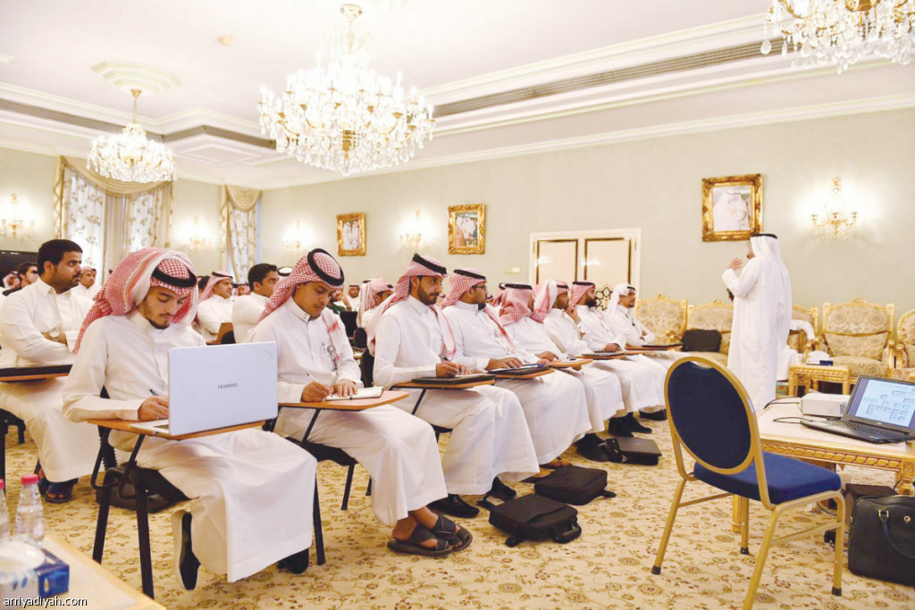 صورة التقطت أمس للمشاركين في ورشة العمل التي نظمتها رابطة الدوري السعودي للمحترفين يستمعون إلى محاضرة(المركز الإعلامي ـ رابطة المحترفين)
