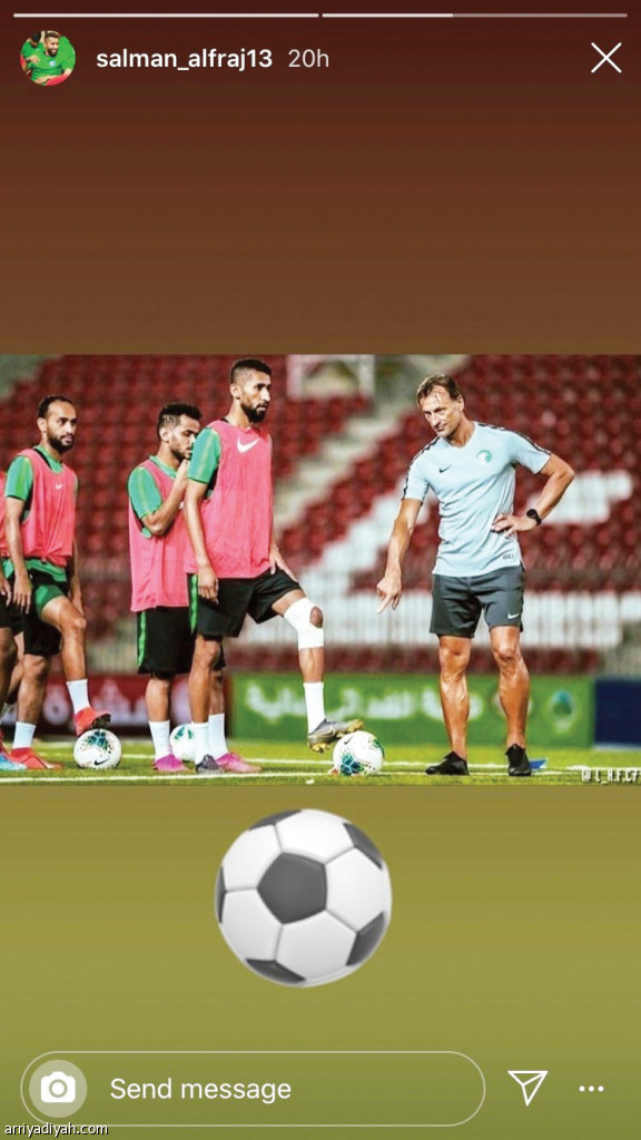 في حين كان تفاعل لاعبي الأخضر عبر حساباتهم الرسمية في منصة التواصل الاجتماعي "إنستجرام"، من خلال بث صور من مشاركتهم في تدريبات الأخضر واستعدادهم لخوض المواجهة. وتقدم سلمان الفرج وفراس البريكان أبرز لاعبي الأخضر المتفاعلين في حين اكتفى الباقون بالغياب عن حساباتهم.