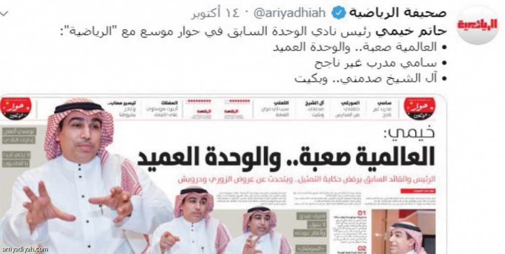 حوار «الرياضية » مع خيمي يثير الجدل بين الوحدة والاتحاد