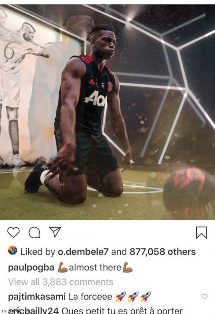 تفاعل أكثر من 800 ألف مع صورة الفرنسي بول بوجبا، لاعب فريق مانشستر يونايتد الإنجليزي لكرة القدم، التي نشرها على حسابه الرسمي في "إنستجرام"، والذي يتابعه 3.7 مليون شخص.