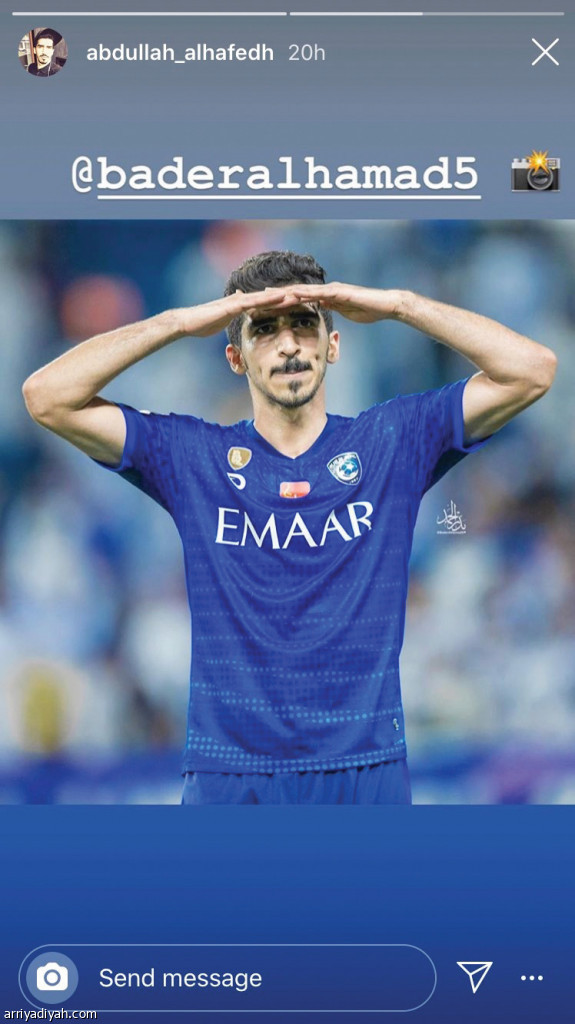 احتفل عبد الله الحافظ، مدافع فريق الهلال الأول لكرة القدم، عبر حسابه الرسمي في منصة التواصل الاجتماعي "إنستجرام" بفوز فريقه على ضمك بثلاثة أهداف مقابل دون مقابل، أمس الأول ضمن منافسات الدوري السعودي، خلال بوست بثه عبر "ستوري" حسابه الرسمي.