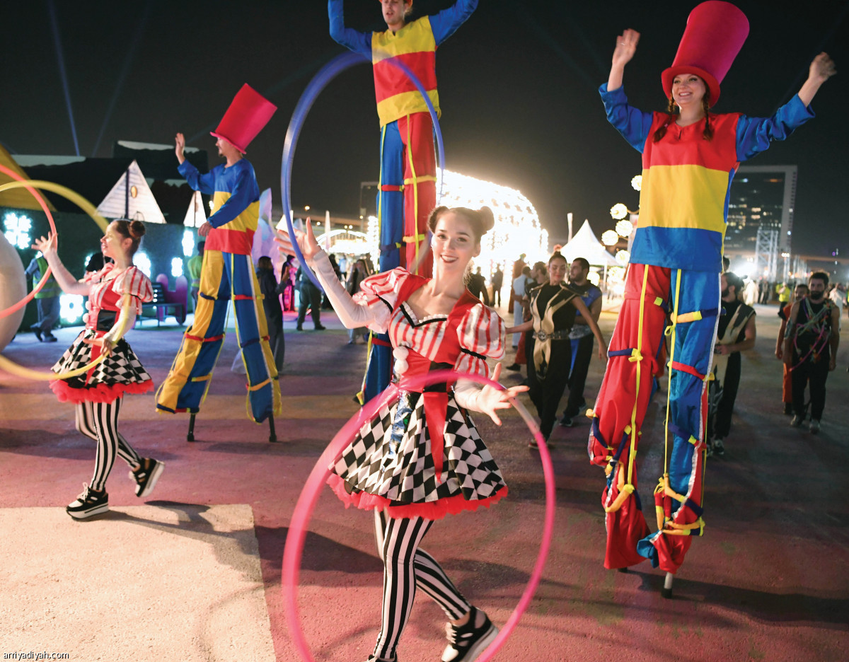 تدرب الكثير من شخصيات الدمى في ونتر وندرلاند التي تستعد لاستقبال الضيوف اليوم على الحركة داخل الملاهي وعمل البروفات.. وفي الصورة التي التقطت أمس تظهر العروض البهلوانية تصوير: بشير صالح