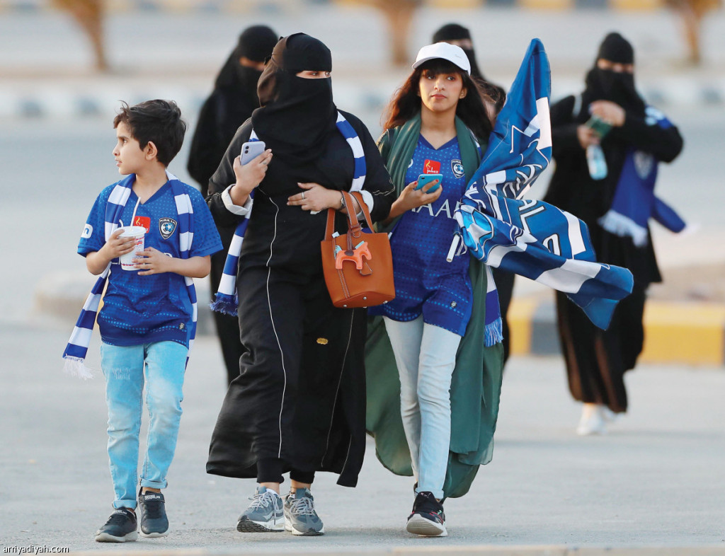 صورة التقطت أمس لعائلة تتجه إلى الملعب سيرًا على الأقدام تصوير: سعد العنزي