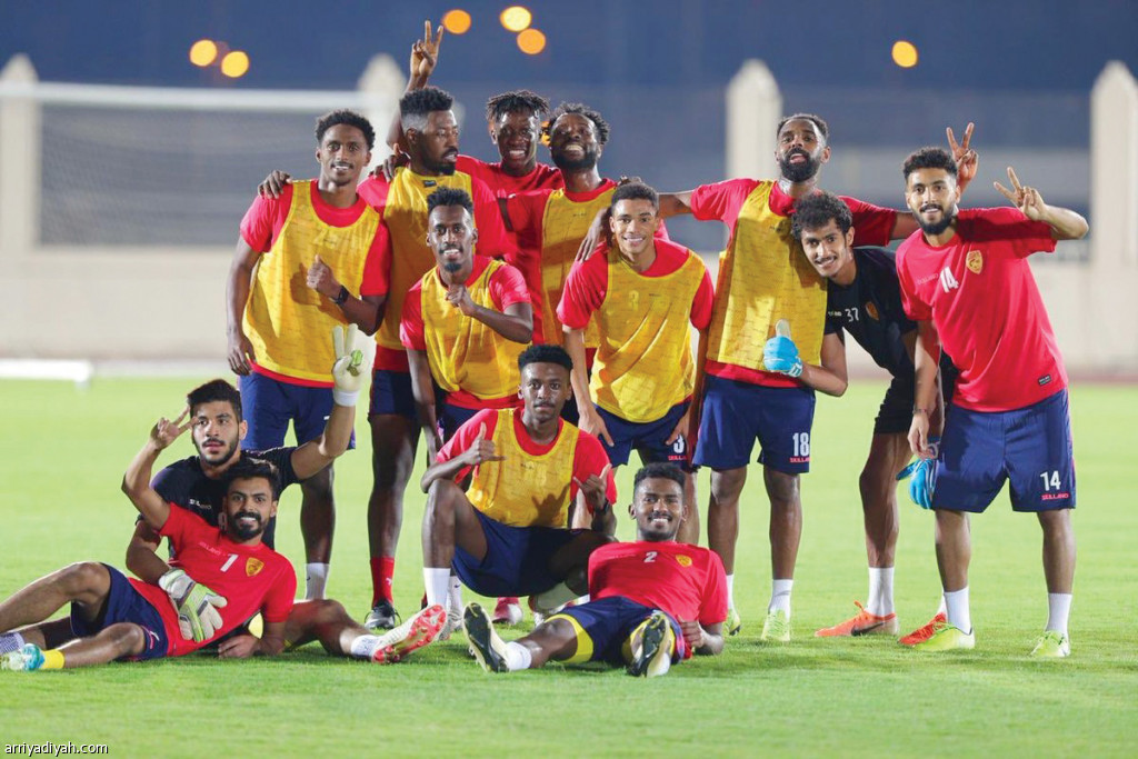 صورة التقطت أمس للاعبي فريق القادسية الأول لكرة القدم عقب نهاية الحصة التدريبية على ملعب الأمير محمد بن عبد العزيز في المدينة المنورة (المركز الإعلامي ـ القادسية)