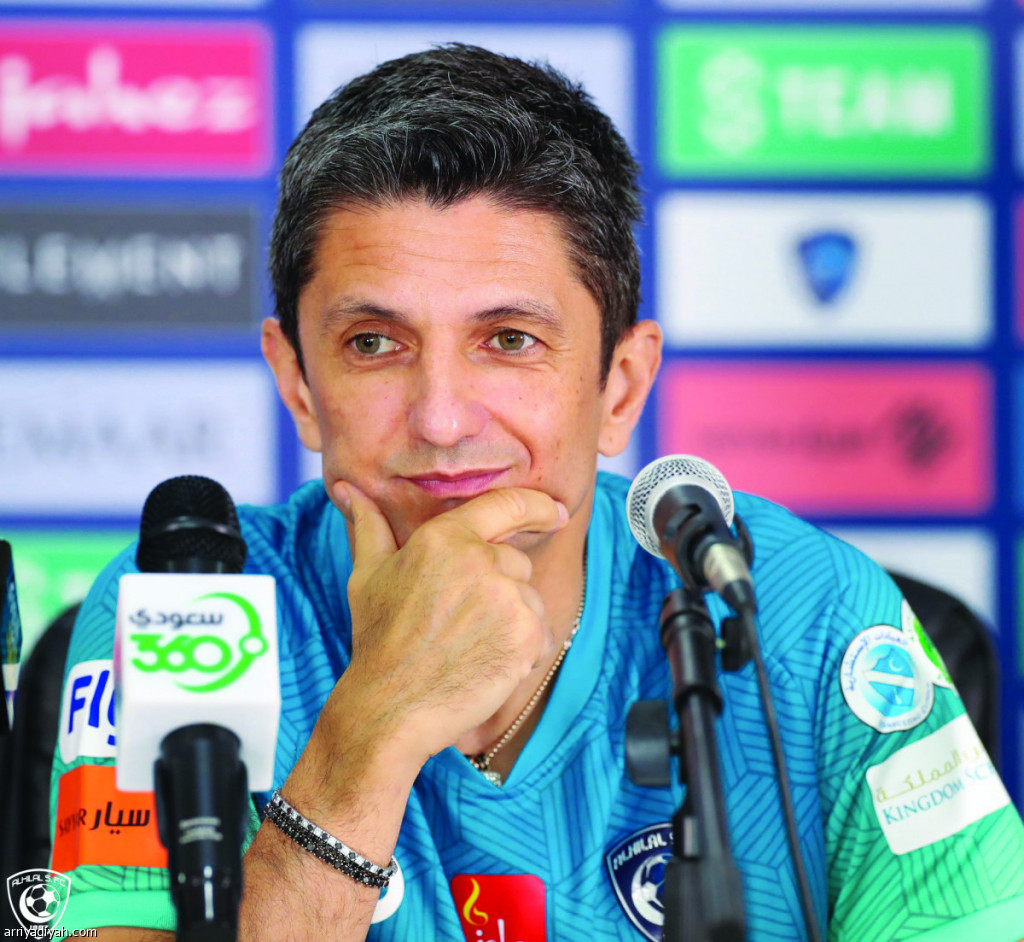 صورة التقطت أمس لرازفان مدرب الهلال أثناء حديثه في المؤتمر الصحافي (المركز الإعلامي ـ الهلال)