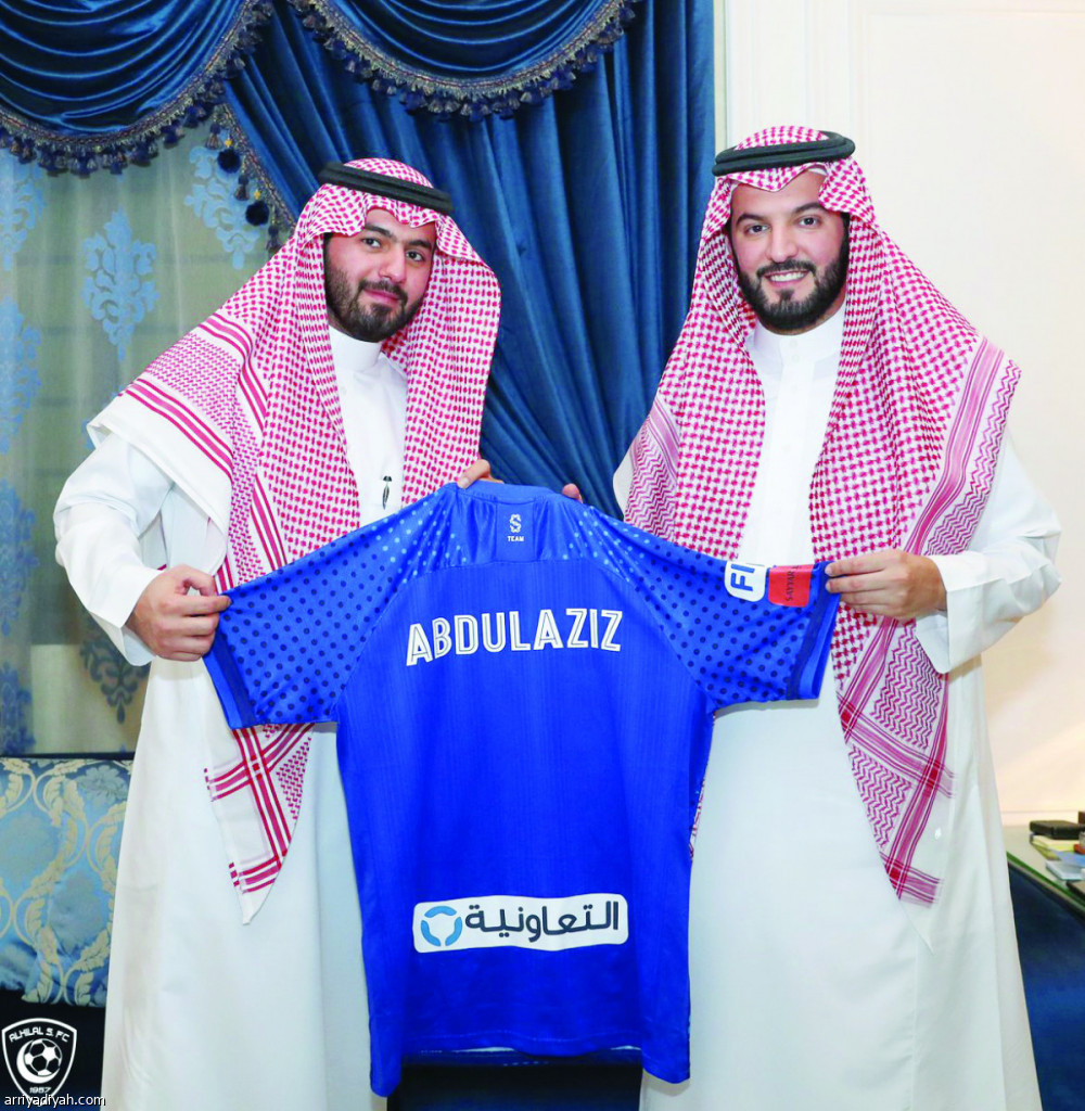 في الصورة التي التقطت أمس يظهر فهد بن نافل رئيس النادي العاصمي وعبد العزيز الراجحي يمسكان قميصًا للفريق الأزرق يحمل اسم العضو الذهبي الجديد (المركز الإعلامي ـ الهلال)
