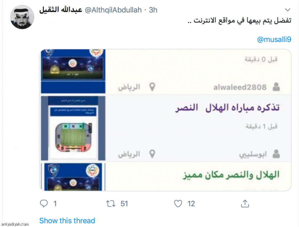 أحدث بيع تذاكر مباراة الهلال والنصر في منصة التواصل الاجتماعي "تويتر" جدلاً كبيرًا ونزاعًا واسعًا بين أنصار الناديين، وذلك قبل مواجهة الفريقين، اليوم، ضمن منافسات الجولة الثامنة من دوري كأس محمد بن سلمان للمحترفين. وعبَّرت الجماهير النصراوية عن غضبها على منصة موقع "صلة"، الذي تم فيه طرح تذاكر المباراة، ولم يستغرق بيعها سوى 10 دقائق، تعطل فيها الموقع لمدة 8 دقائق، ونفد بيع التذاكر في دقيقتين، ووصل عدد الحسابات المتفاعلة نحو 22 ألفًا في "تويتر". ونال "منشن" حساب صلة في التغريدة التي طرح فيها رابط حجز التذاكر نحو 366 تعليقًا، وهجومًا عنيفًا من الجماهير النصراوية والهلالية، التي اشتكت من نفاد التذاكر، إضافة إلى صعوبة شرائها بسبب إغلاق الموقع دون معرفة الأسباب، كما تحول المنشن إلى سوق سوداء من بعض المعرفات، لبيع التذاكر على النصراويين والهلاليين الراغبين بحضور الديربي. وأعلنت صلة عبر بيان رسمي أمس إعادة طرح التذاكر المخصصة لجماهير النصر بعد الأحداث التي وقعت.