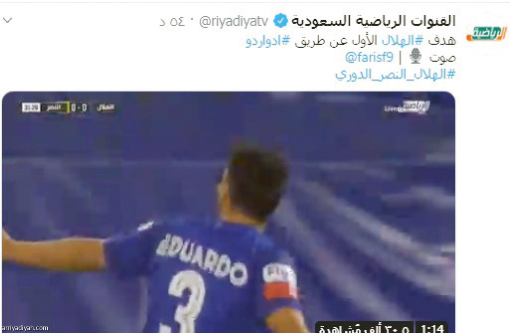 وظهر اسم البرازيلي إدواردو أكثر اللاعبين تداولاً في الهاشتاق بعدد 25 ألف تغريدة، قبل أن يعود المغربي عبد الرزاق حمد الله ويزيحه بنحو 29 ألف تغريدة.