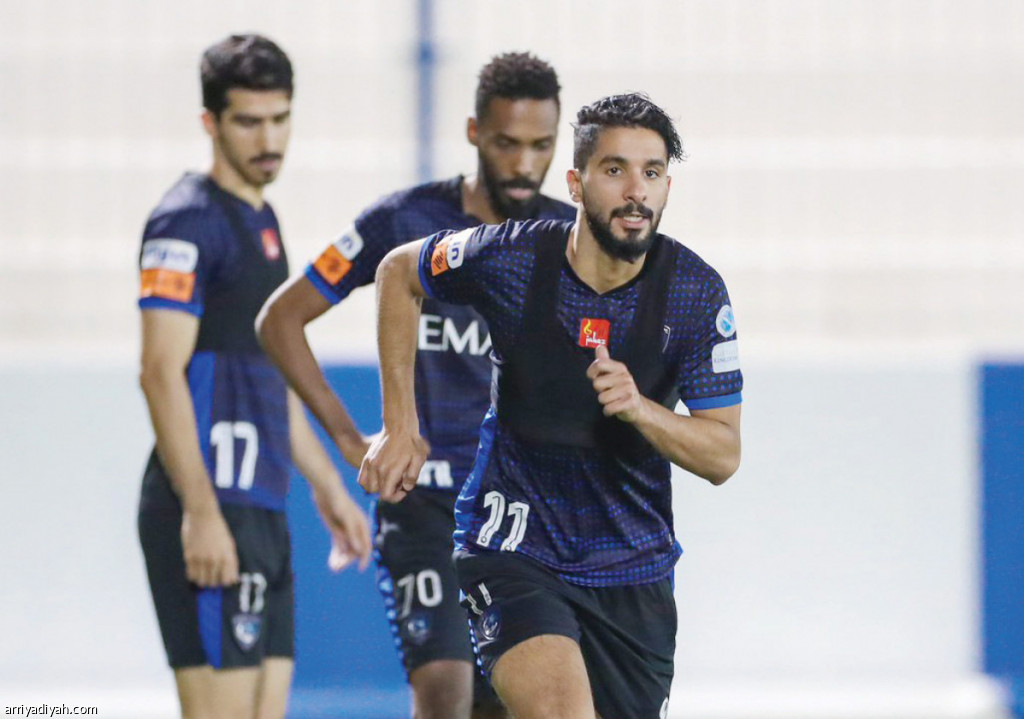 صورة التقطت أمس لصالح الشهري لاعب الهلال في تدريبات فريقه.. ويبدو محمد جحفلي وعبد الله الحافظ زميلاه (المركز الإعلامي ـ الهلال)