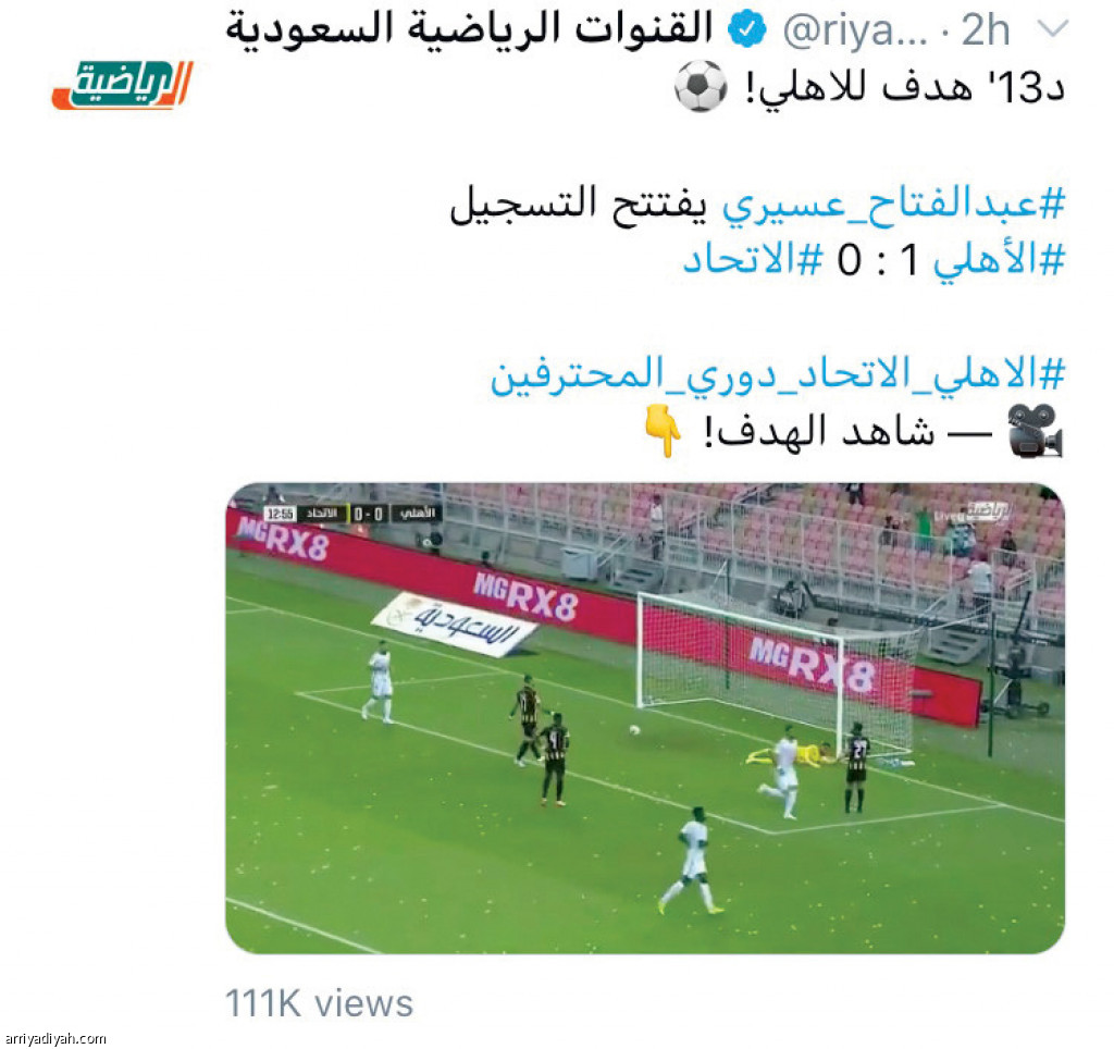 وغاب هاشتاق مباراة الفريقين عن الترند السعودي حتى بداية الشوط الثاني، إذ حصد خلال الشوط الأول نحو 15 ألف تغريدة فقط، ليصل إلى 55 ألف تغريدة في الشوط الثاني. وبعد نهاية المباراة وصل إلى 70ألف تغريدة. وخطف عبد الفتاح عسيري، لاعب وسط الأهلي، نجومية الديربي في "تويتر" بنحو 4305 تغريدات، كتبتها جماهير الأهلي عنه، تغنَّت فيها بالمستوى الكبير الذي قدمه في المباراة، وتسجيله الهدف الأول، بينما نال فيديو هدفه في مرمى الاتحاد نحو 15 ألف مشاهده في خمس دقائق فقط. قبل أن ترتفع مشاهدته إلى 138 ألف. في حين، جاء سعيد المولد، ظهير أيمن الفريق الأهلاوي، ثانيًا بنحو 3508 تغريدات عنه، لكنَّ الجماهير الأهلاوية انتقدته كثيرًا بسبب مستواه السيئ، حسب وصفها. أما رومارينيو، مهاجم الاتحاد، فكان الأكثر ذكرًا في تغريدات الاتحاديين بنحو 1345 تغريدة بين مدح وانتقاد لأداء البرازيلي، وحلَّ أخيرًا السوري عمر السومة، قائد الأهلي وصاحب الهدف الثاني في المواجهة، بنحو 1289 تغريدة، فيما بلغ عدد مشاهدات فيديو هدفه 24 ألفًا في ثماني دقائق.