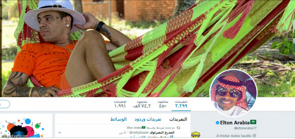 ويتابع إلتون في حسابه في "إنستجرام"، و"تويتر" العديد من الشخصيات الاعتبارية في السعودية، وكبار اللاعبين، وحسابات أندية سعودية.
