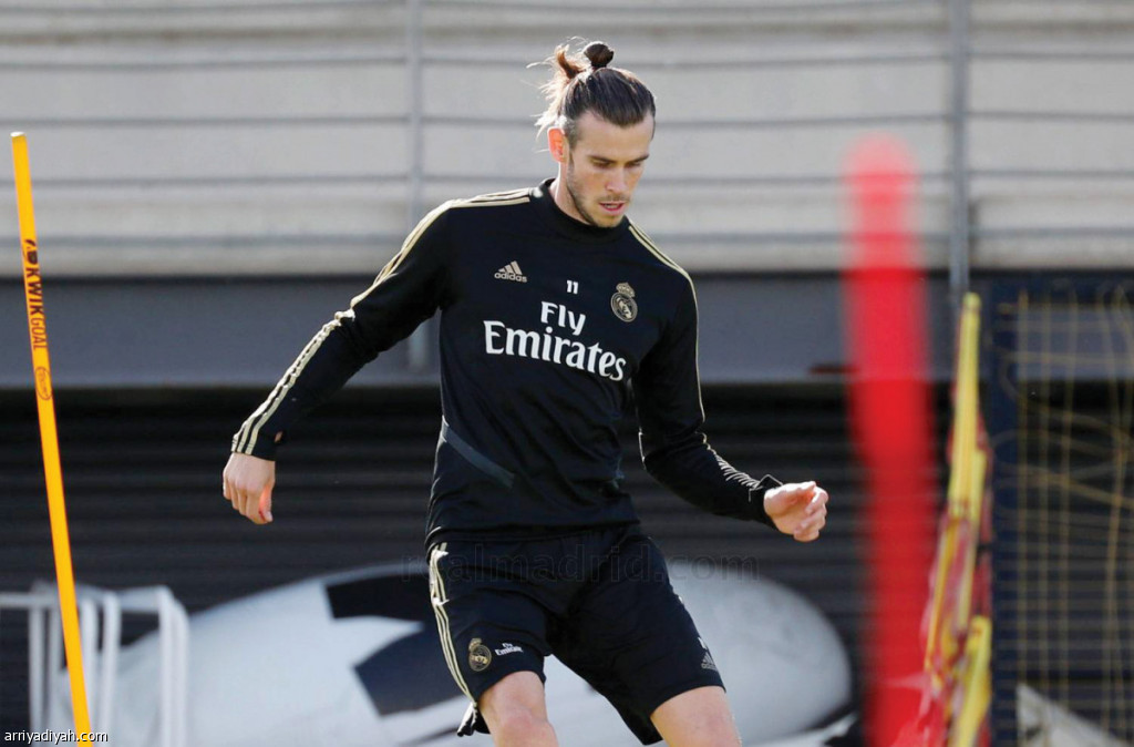 صورة التقطت أمس لجاريث بيل لاعب ريال مدريد الإسباني أثناء التدريبات استعدادًا لمواجهة فريقه أمام غلطة سراي غدًا في دوري الأبطال (المركز الإعلامي - ريال مدريد)