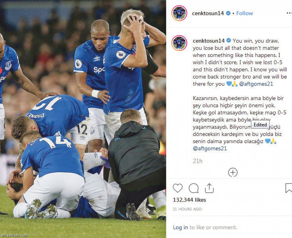 وقدم توسون، صاحب هدف التعادل في مباراة إيفرتون وتوتنهام، رسالة عاطفية إلى البرتغالي جوميز، زميله في النادي الإنجليزي، بعد إصابته في المباراة بخلع في كاحل القدم، ونال بوست توسون نحو 135 ألف إعجاب، إضافة إلى 1500 تعليق من الجماهير الرياضية، قال فيه: "تفوز تخسر تتعادل لا يهم ذلك عندما تحدث مثل هذه الإصابات، تمنيت أنني لم أسجل الهدف، تمنيت أن نخسر "5ـ0" ولا يحدث لك ذلك يا أخي". بوست توسون نال تفاعل اللاعبين العالميين، مثل الإسباني نيجريدو والأسترالي تيم كاهيل، اللاعبين السابقين لفريق إيفرتون الإنجليزي.