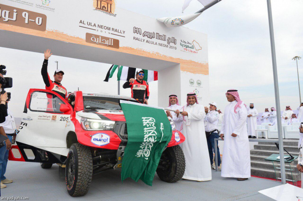 أعطى الأمير خالد بن سلطان العبدالله الفيصل رئيس مجلس إدارة الاتحاد السعودي للسيارات والدراجات النارية ، شارة الانطلاق لرالي العلا نيوم، الذي يشكل الجولة الثالثة من بطولة السعودية تويوتا للراليات الصحراوية، بتنظيم من الاتحاد السعودي للسيارات والدرّاجات النارية، وبدعم من الهيئة العامة للرياضة.