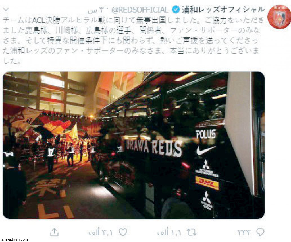 تفاعل نحو 5 آلاف مغرد مع تغريدة حساب نادي أوراوا الياباني على موقع التواصل الاجتماعي “تويتر”، التي أعلن من خلالها مغادرة الفريق إلى السعودية لمواجهة الهلال في ذهاب نهائي دوري أبطال آسيا.