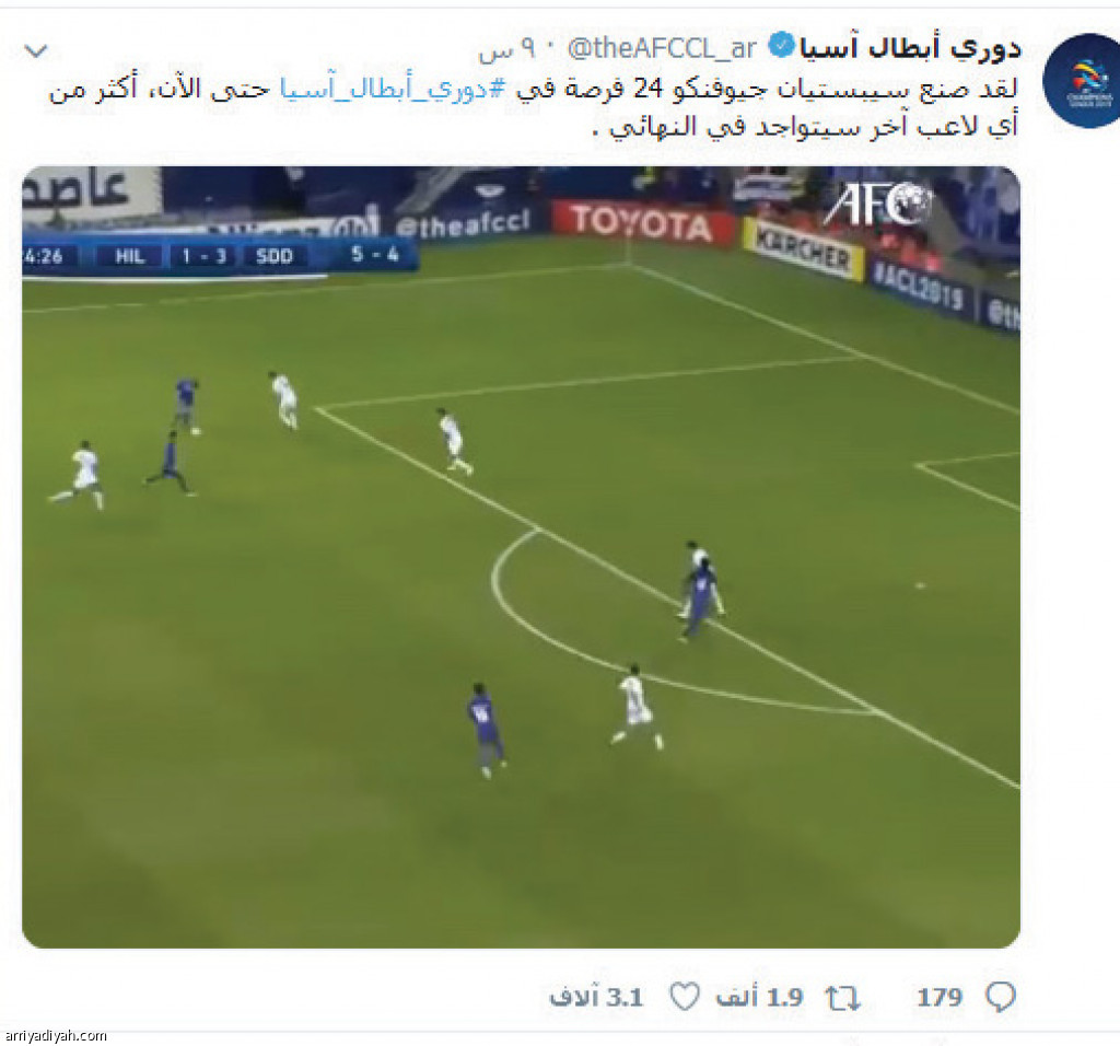 استغل حساب الاتحاد الآسيوي في منصة التواصل الاجتماعي "تويتر" اقتراب قمة ذهاب نهائي دوري أبطال آسيا بين الهلال وأوراوا، على ملعب جامعة الملك سعود بعد غدٍ.