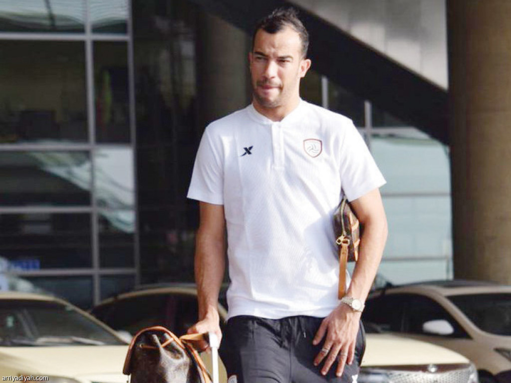 صورة التقطت أمس يظهر الجزائري جمال بلعمري مدافع الفريق لدى وصول البعثة جواً إلى الأردن (المركز الإعلامي ـ اتحاد القدم العربي)