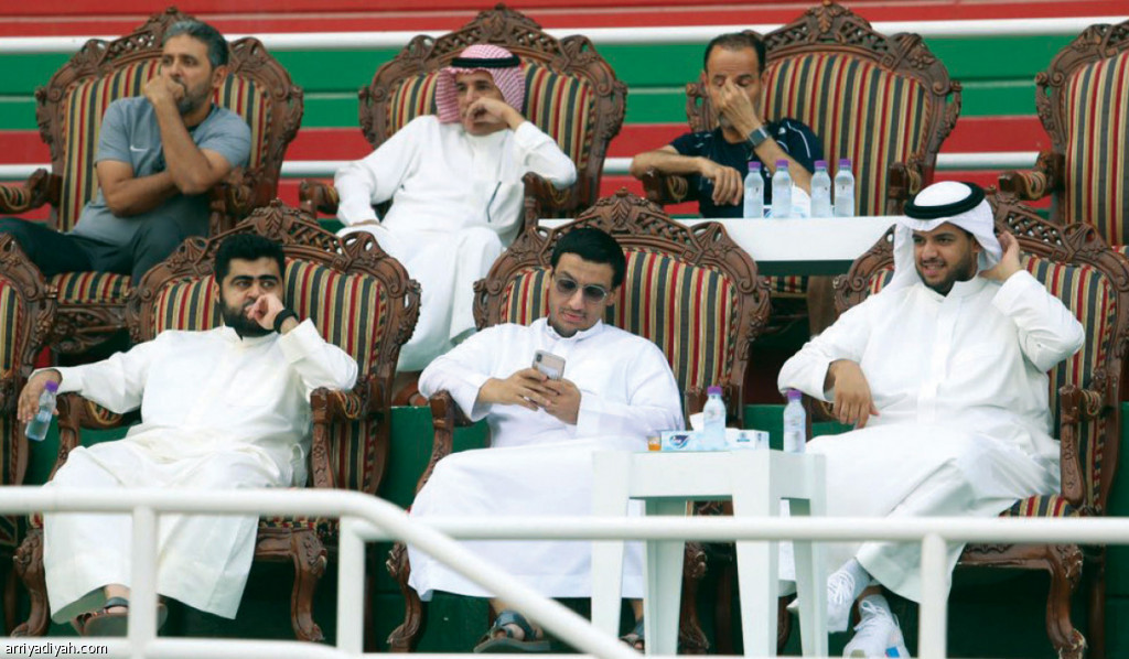 صورة التقطت أمس يظهر حاتم المسحل نائب رئيس النادي الشرقي وحسن المسحل ابن أخيه ومعاذ العوهلي الرئيس التنفيذي وفي الأعلى فيصل البدين المشرف على الفئات السنية أثناء متابعة المباراة (المركز الإعلامي ـ الاتفاق)