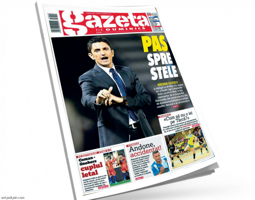أظهرت صحيفة “جازيتا سوبرتوريلور” الرومانية صورة كبيرة للمدرب رازفان على غلاف عددها الصادر صباح أمس، مع عنوان رئيس كتبت فيه “خطوة نحو النجوم”، قبل أن تشير إلى أن نتيجة الفوز بهدف نظيف كانت صغيرة عند مقارنتها بالسيطرة الرائعة للفريق السعودي.