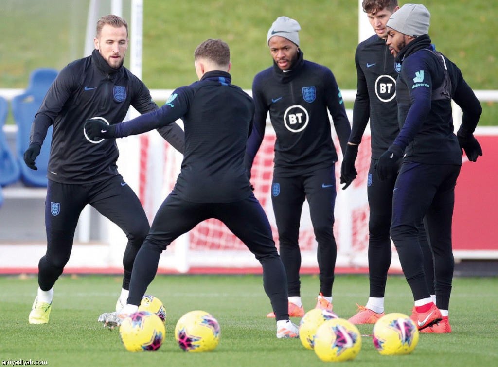 صورة التقطت أمس لاعبو إنجلترا أثناء التدريبات (رويترز)