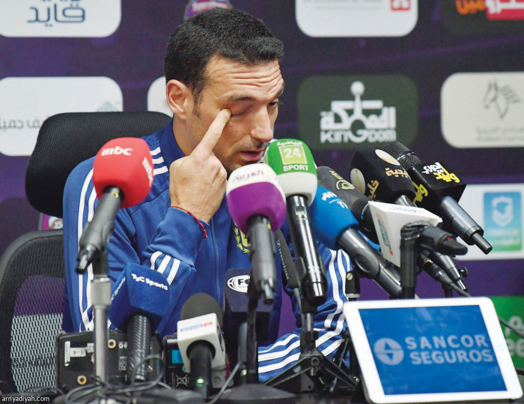 صورة التقطت أمس لسكالوني أثناء حديثه في المؤتمر الصحافيتصوير: سعد العنزي