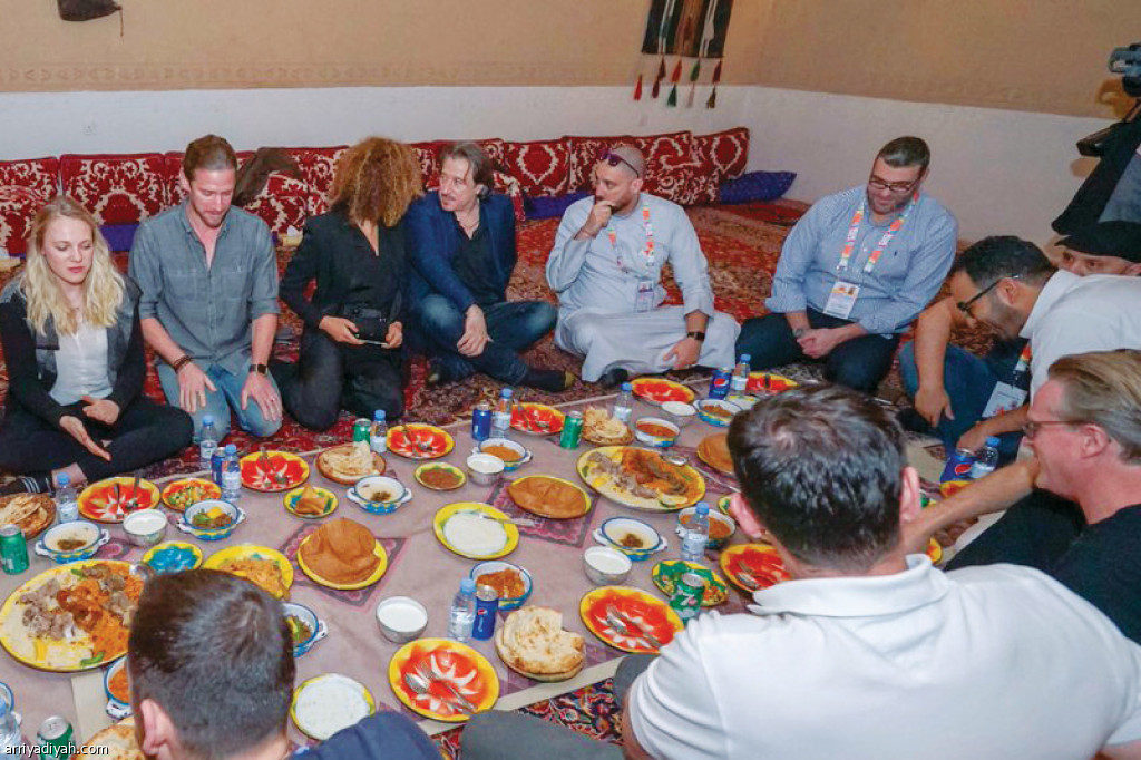 صورة التقطت أمس لعدد من المشاركين في فعالية “ستان لي سوبر” التي تأتي ضمن فعاليات موسم الرياض يتناولون العشاء النجدي في مطاعم الرياض (المركز الإعلامي ـ موسم الرياض)