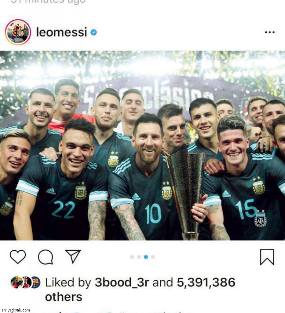 ميسي ومنذ وصوله إلى الرياض الخميس الماضي نشر تدوينتين فقط، الأولى عقب فوز المنتخب على نظيره البرازيلي 1ـ0 على ملعب الجامعة أمس. ونشر عبر 4 صور له مع زملائه وهم يحتفلون بالفوز والكأس وأثناء المباراة.