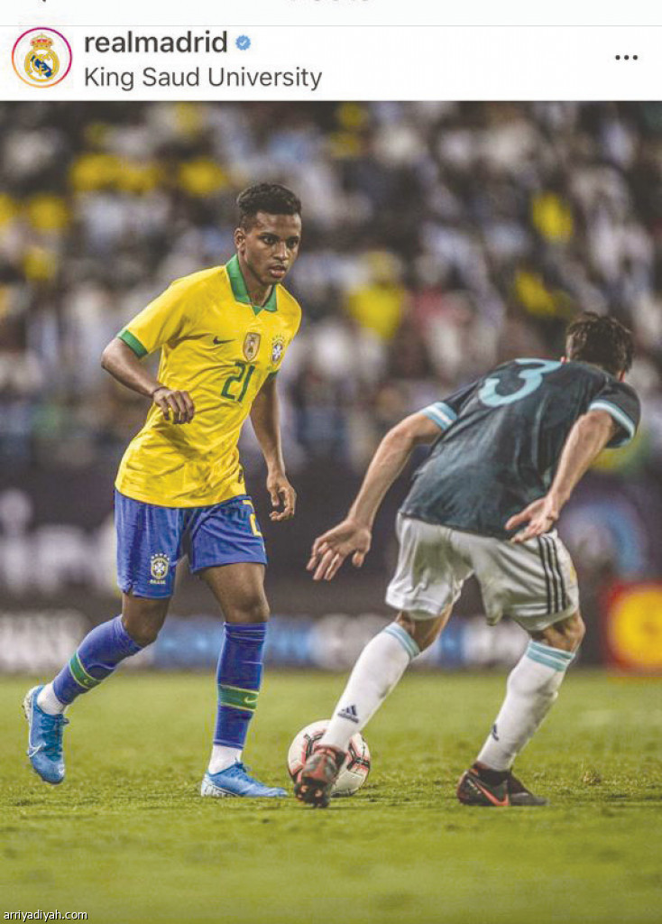 هنأ حساب نادي ريال مدريد الإسباني على "إنستجرام" رودريجو جويس، لاعبه، على مشاركته الدولية الأولى مع منتخب البرازيل الأول لكرة القدم، في المباراة التي لعبت أمام الأرجنتين على ملعب الجامعة في الرياض. وضم الريال الموهبة البرازيلية "18 عامًا" الموسم الماضي من سانتوس، لكنه أشركه مع الفريق الثاني، قبل أن ينضم رسميًا إلى تشكيلة الفريق الأول الموسم الجاري.