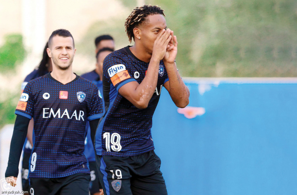 صورة التقطت أمس للبيروفي أندريه كاريلو لاعب الهلال خلال الحصة التدريبية لفريقه استعدادا لمواجهة أوراوا الياباني في إياب دوري أبطال آسيا (المركز الإعلامي ـ الهلال)