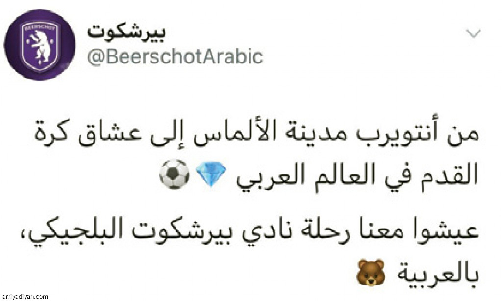 افتتح فريق بيرشكوت البلجيكي المملوك للأمير عبدالله بن مساعد حسابًا باللغة العربية في منصة التواصل الاجتماعي “تويتر” قبل نحو يومين. وشهد الفيديو الترويجي الأول للحساب مشاهدات عالية حصدت نحو ربع مليون مشاهدة ووصل عدد متابعيه إلى نحو 8 آلاف خلال 48 ساعة فقط. وبين لـ “الرياضية” مصدر مسؤول أن فكرة تنفيذ الفيديو الذي حصد تفاعلًا واسعًا جاءت خلال أقل من 24 ساعة، وسوف تكون هناك خطوات واسعة للترويج للحساب. وفكرة الحساب العربي تأتي تماشيًا مع توجه عدد من الأندية الأوروبية لافتتاح حساب بالنسخة العربية لزيادة تفاعل الجماهير العربية، وتحقيق انتشار العلامة التجارية للنادي في المنطقة،وأضاف: ما زلنا في بداية المشوار، وحجم التفاعل لم يصل لدرجة الرضا، ونسعى خلال الفترة المقبلة إلى إضفاءً مزيد من التفاعل مع الجماهير.