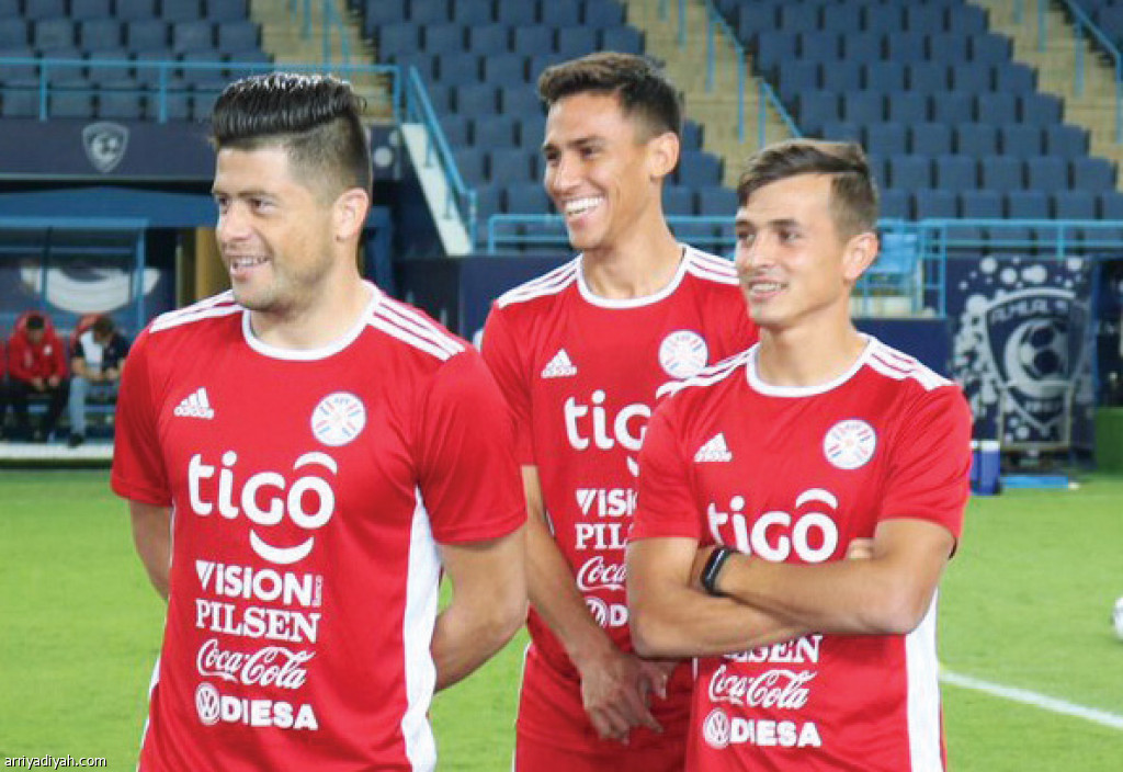 صورة التقطت أمس الأول من تدريبات المنتخب الباراجوياني استعدادًا لمواجهة الأخضر.. ويظهر على اليمين أندريس كوباس الشاب المتطلع لمشاركته الدولية الأولى (المركز الإعلامي ـ منتخب باراجواي)