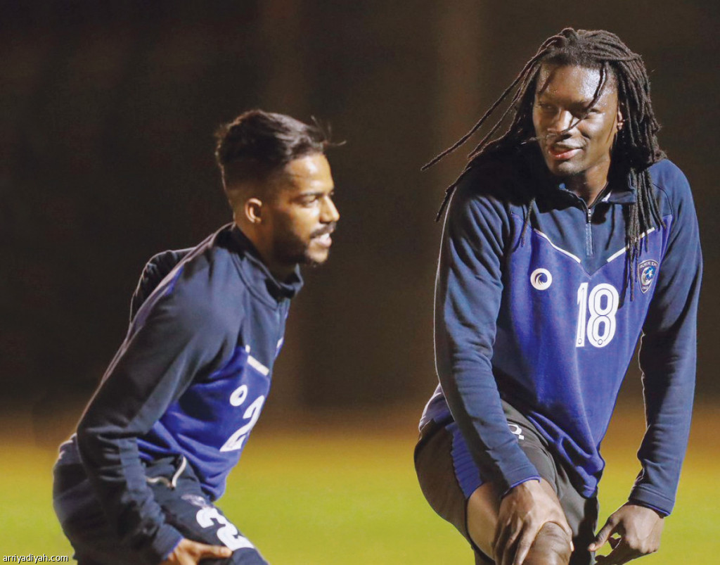 صورة التقطت أمس للفرنسي بافيتمبي جوميز ونواف العابد لاعبي فريق الهلال الأول لكرة القدم خلال الحصة التدريبية في طوكيو العاصمة اليابانية استعداداً لمباراة أوراوا الياباني ضمن إياب نهائي دوري أبطال آسيا 2019 م في سايتاما الأحد المقبل (المركز الإعلامي ـ الهلال)