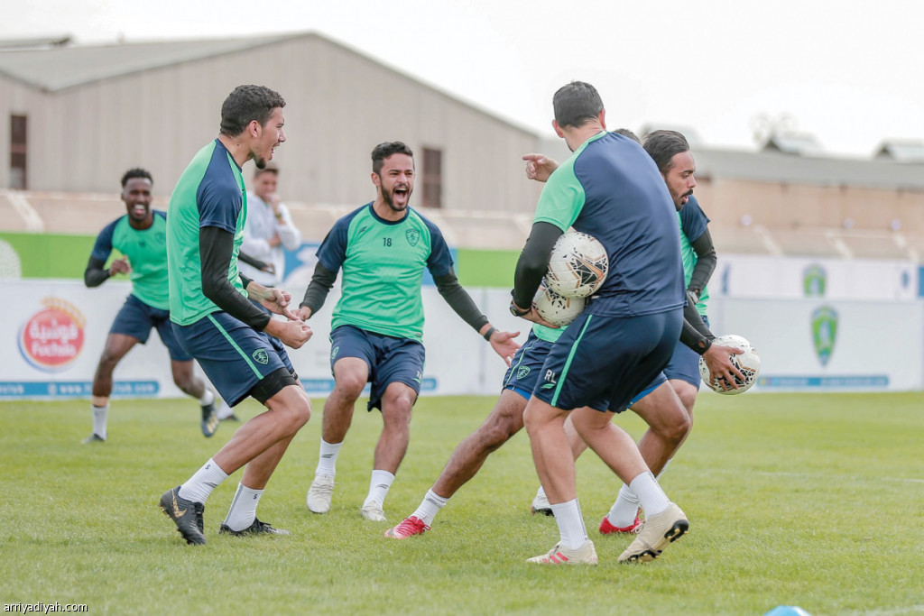 صورة التقطت أمس من المناورة الترفيهية التي فرضها البلجيكي يانييك فيريرا مدرب فريق الفتح الأول لكرة القدم على اللاعبين استعدادًا لمواجهة أبها (المركز الإعلامي ـ الفتح)