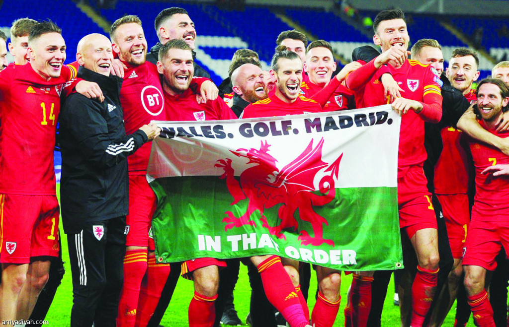 ورقص بيل براية بلاده وعليها عبارة "ويلز. الجولف. مدريد. بهذا الترتيب" بعد أن حسمت ويلز التأهل المباشر لبطولة أوروبا لمرة الثانية على التوالي يوم الثلاثاء الماضي.