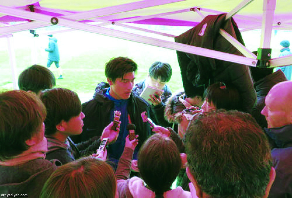 صورة التقطت أمس لدايكي هاشيوكا مدافع فريق أوراوا الياباني أثناء حديثه إلى الصحافيين على هامش الحصة التدريبية تحضيرًا لملاقاة الهلال (صحيفة نيكان سبورتس اليابانية)