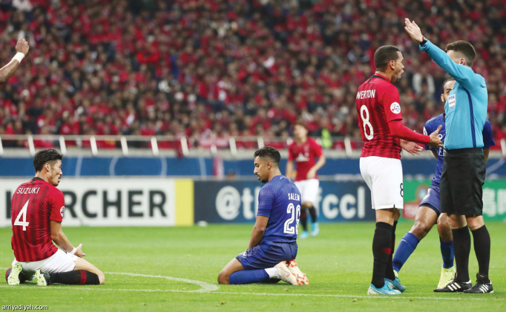 64 الواجب إنذار لاعب أوراوا الياباني تاكويا بالإنذار الثاني واستبعاده من المباراة
