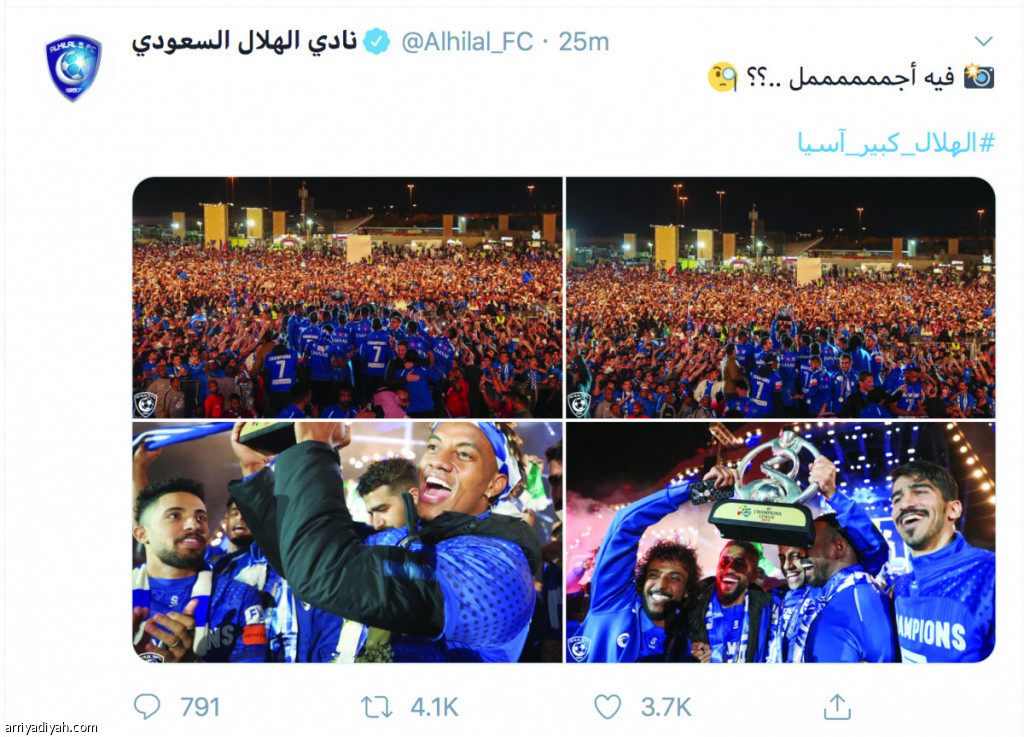 سيطر حفل الهيئة العامة للرياضة لنادي الهلال، بعد تتويجه بلقب دوري أبطال آسيا على حساب فريق أوراوا الياباني للمرة الأولى بالمسمى الجديد، على منصة التواصل الاجتماعي "تويتر".